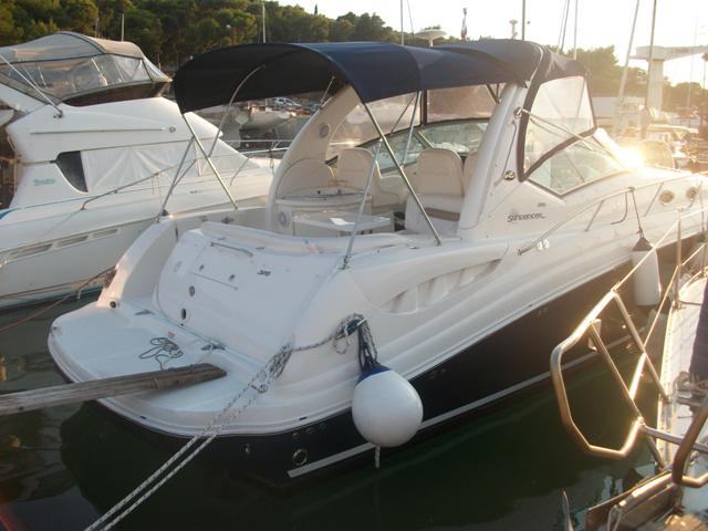 Lijepi Sea Ray sundancer 375 od opreme sadrži: generator Honda, električni sidreni vinč Lofrans, klima, električna kaljužna pumpa, zamrzivač, CD player, mikrovalna, zvučnici u salonu i u kokpitu, LCD TV, ledomat, bimini top, sprayhood, gumenjak s vanbrodskim motorom, sigurnosna oprema itd.