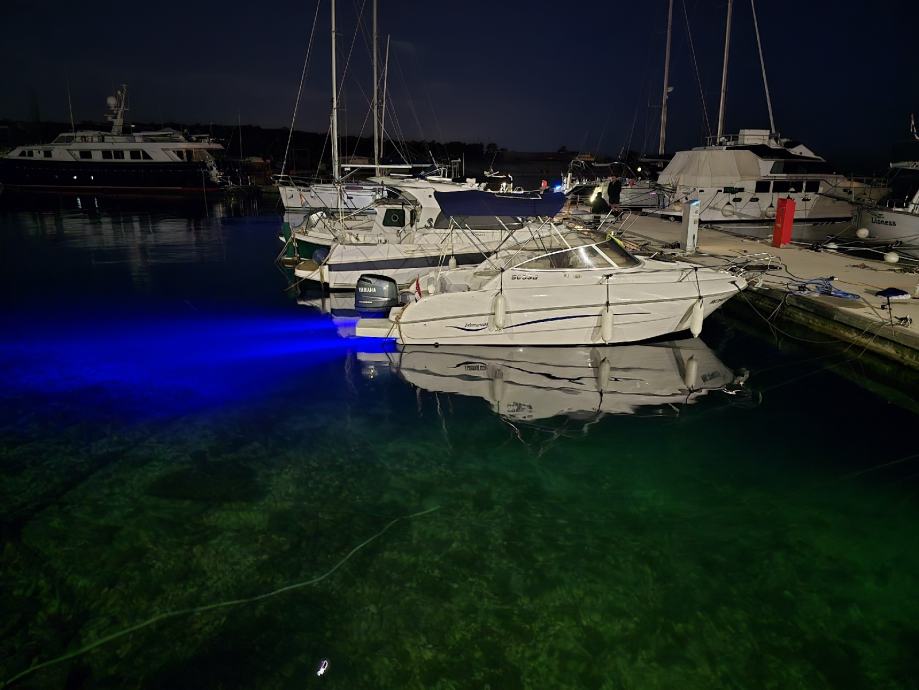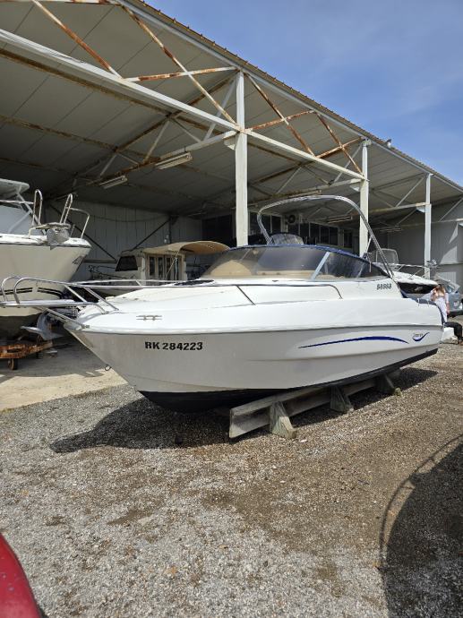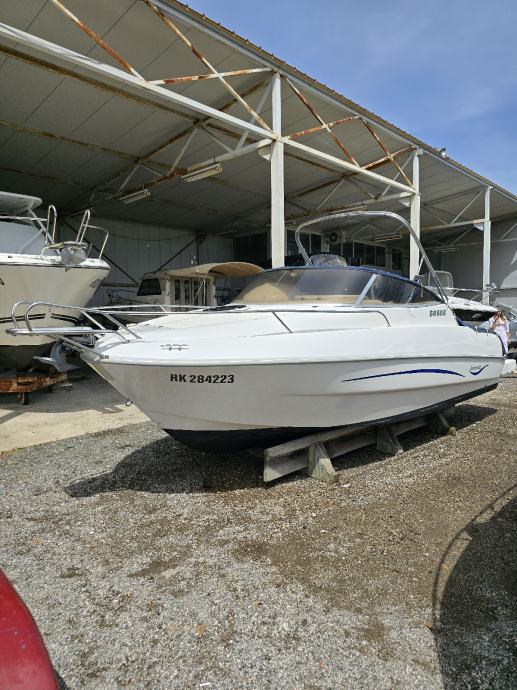 Od opreme ima solar,tuš,platforme,el.sidreno vitlo,zimsku tendu,bimini,tende za kompletno zatvaranje krme,špirun,podvodna svjetla,bluetooth radio,novi proveni jastuci,2 baterije,kemijski wc,garmin putno racunalo,nosači za štapove