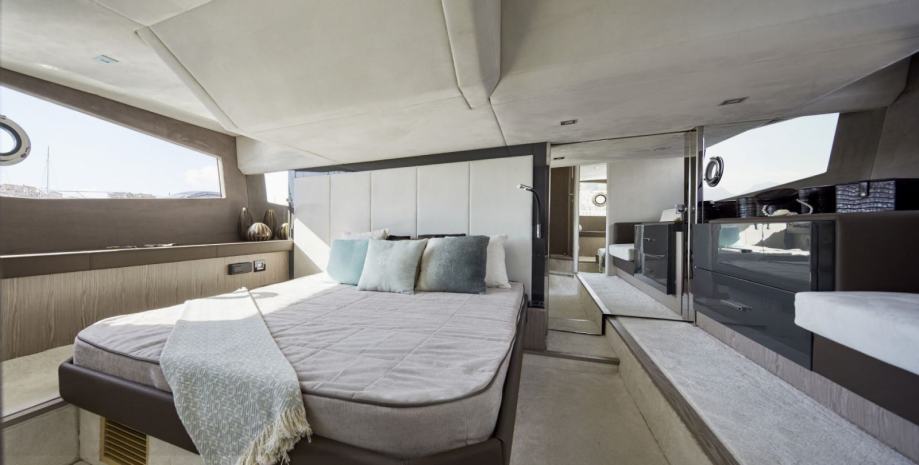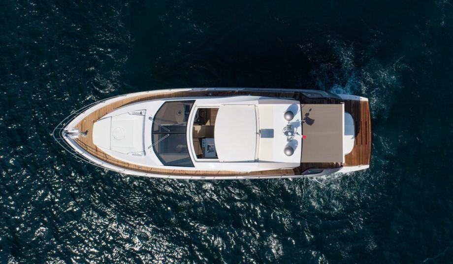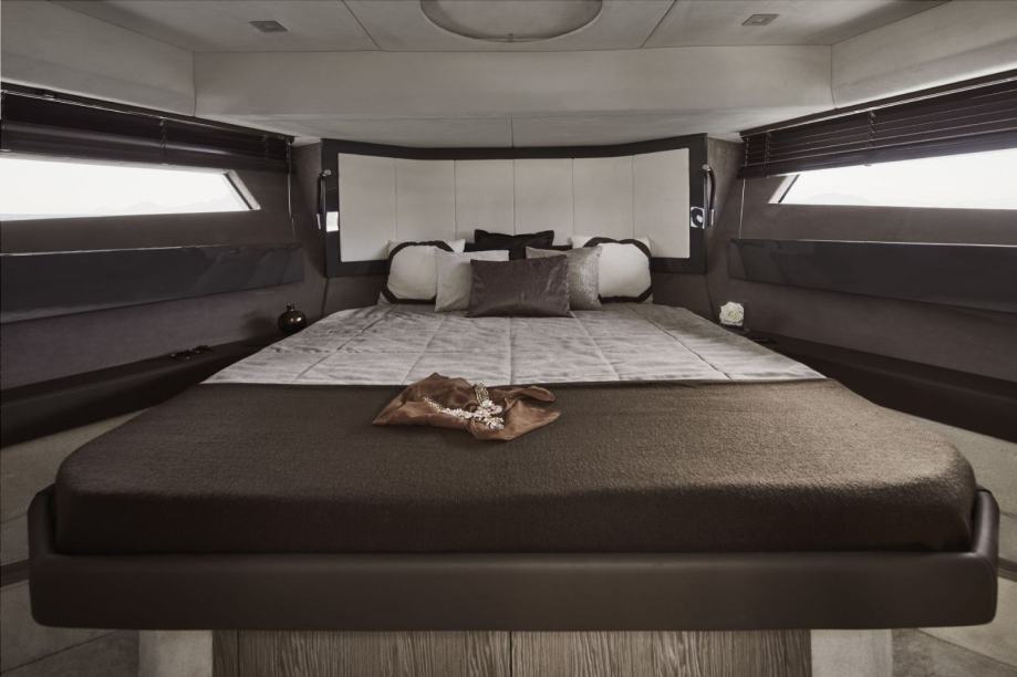 Veliko područje za sunčanje i stol za osam osoba čine glavnu palubu središnjom točkom života na brodu, dok dolje 3 kabine, uključujući središnje raspoređenu glavnu suitu opremljenu zasebnom kupaonicom, i kuhinja ne pružaju samo visoki standard boravka, već svaki trenutak na brodu pretvaraju u nevjerojatno životno iskustvo.