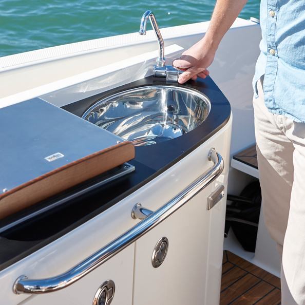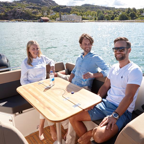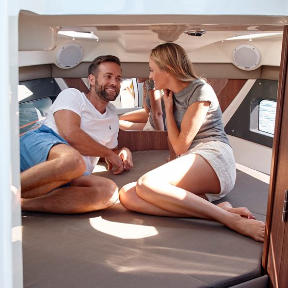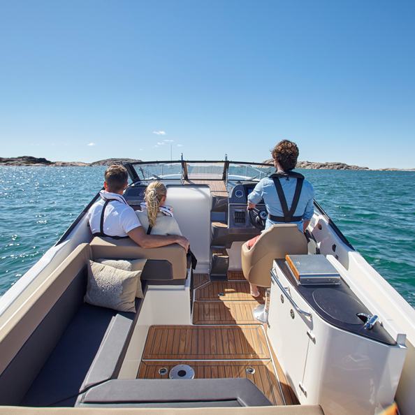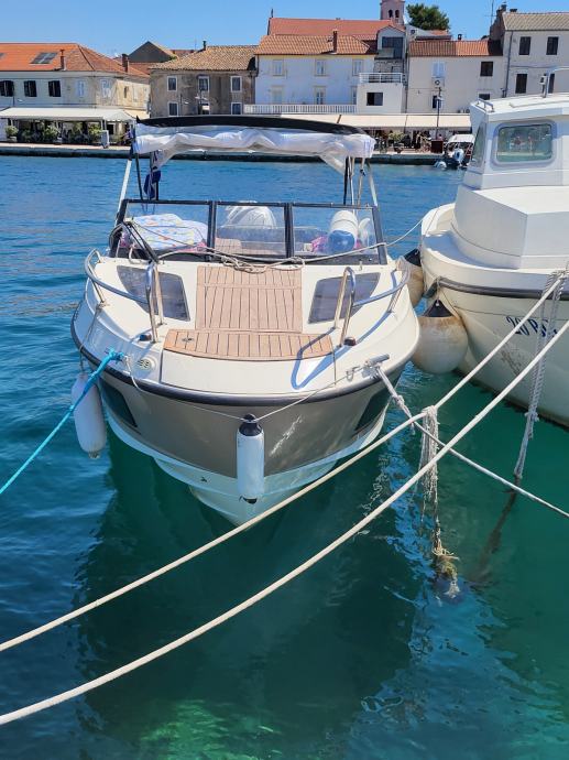 Broid ima: kabina sa lezajem za dvoje, wc, ploter Simrad, frizider, tus, kuhnja sa stednjakom te mogucnost grijanja, montirano sidro sa daljinskim, orginal tenda za parking te orginal tenda za kompletni boravak, radio, osvjetlljena paluba, flapovi, stup za vuc skijase, jos dvoje mogu spavati na palubi kad se kutna klupa slozi itd. puno jos dodatne opreme.