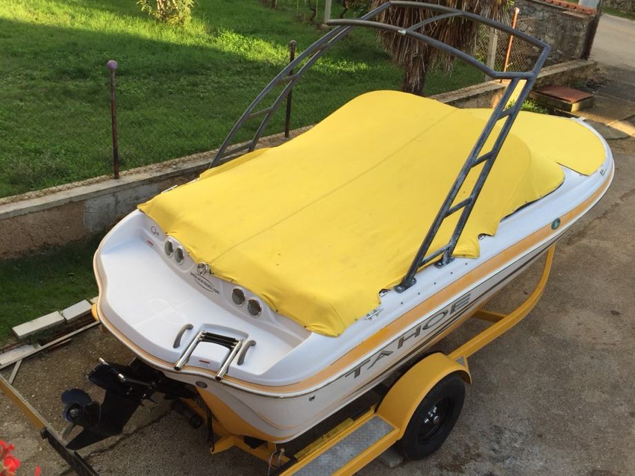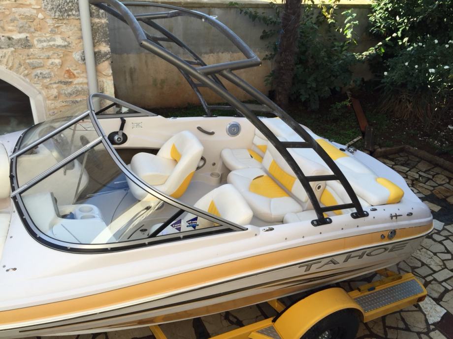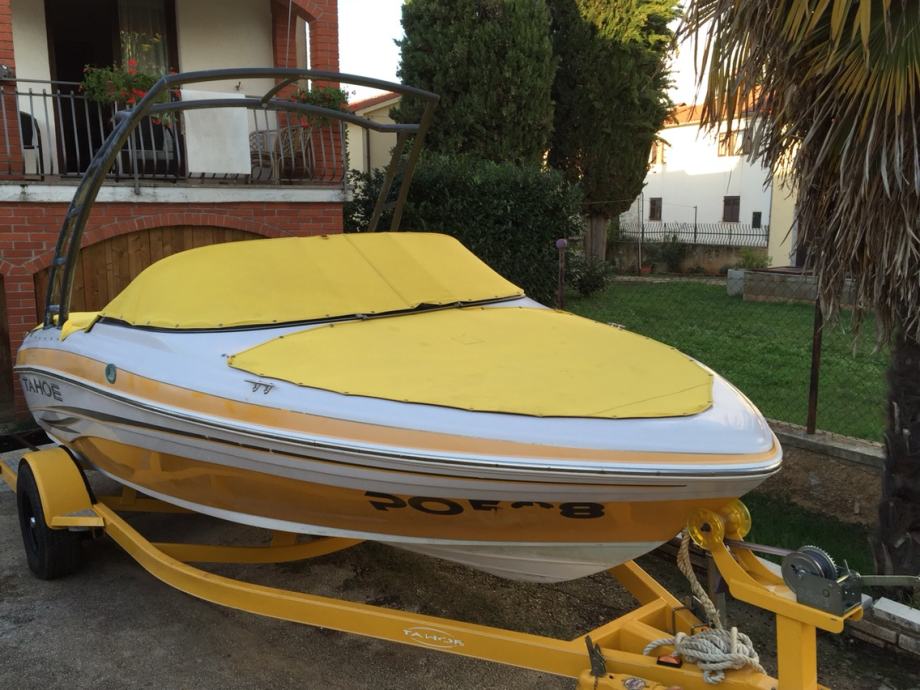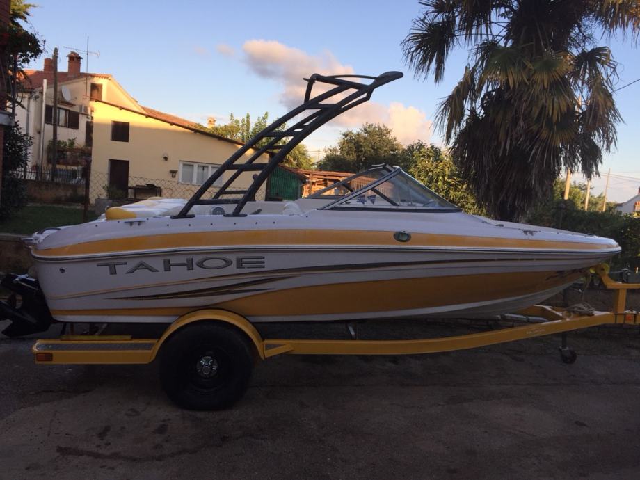 Prodajem gliser Tahoe Q4 SS, 2008 god. prvi put u vodi 2010, odlično stanje, uredno servisiran i konzerviran, trajno registriran, gliser je dužine 5,50 m, ima unutarnji motor mercruiser 3.0 , 100 kw (135 ks), ima ljetnu i zimsku ceradu, kompas, sidro, stepenice za vodu, radio pioneer mp3, bokobrane, wake-tower, itd. Mala potrošnja.Uz gliser ide i originalni trailer, nema atest, ali provucena je sva potrebna signalizacija i ostalo potrebno za atest.