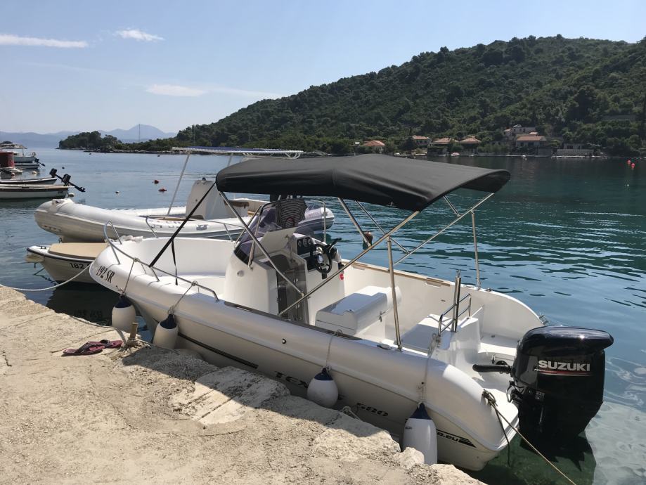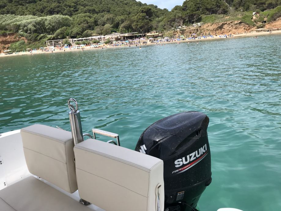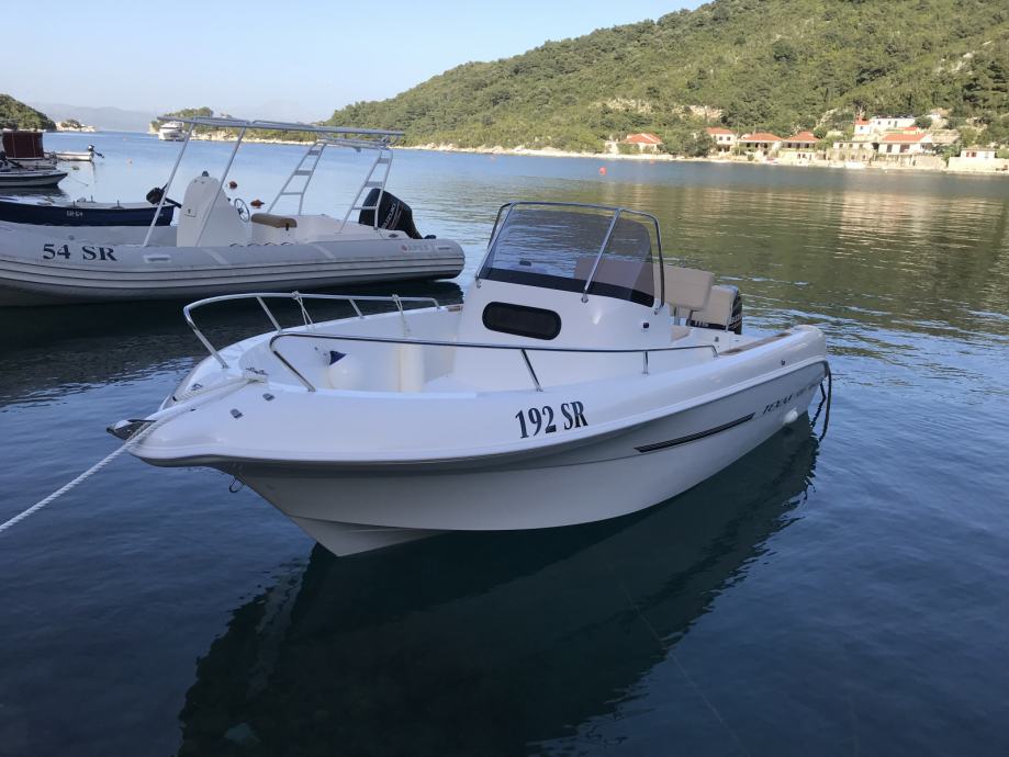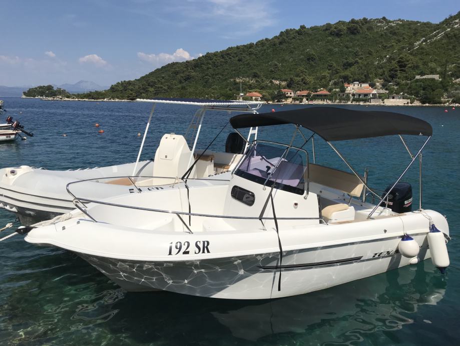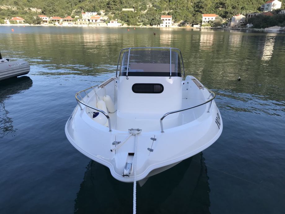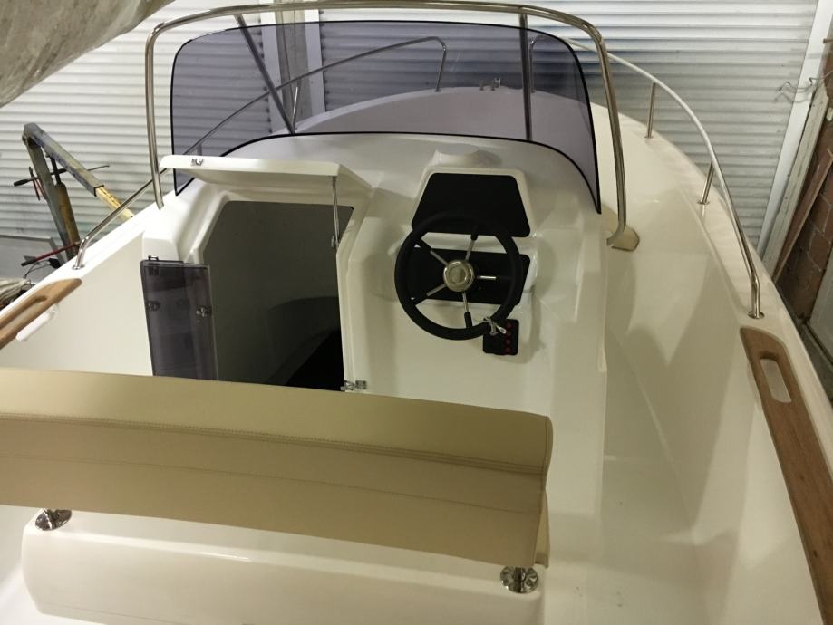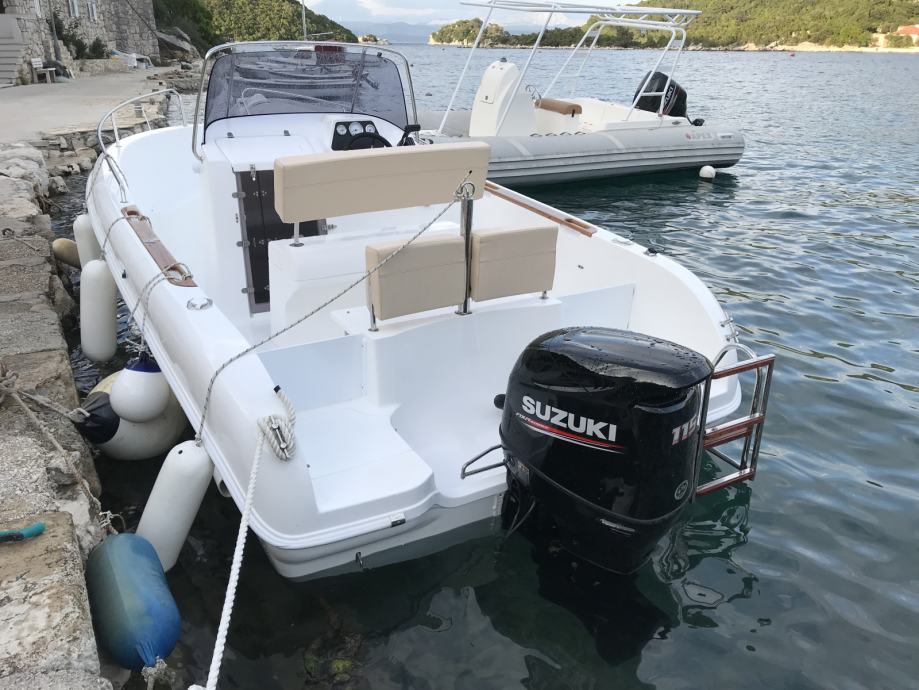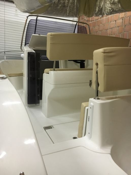 Oprema : inox tank goriva 115 l, suzuki Separator goriva , pokazivač goriva, inox bimini tenda, krmeni nogari tende, inox rukohvat oko konzole, inox šipka za vuču skija, tuba, glavna sklopka, automatska pumpa sentina, ručna pumpa sentina, proveni sidreni roler, sidro sa konopom, bokobrani , sunčalište proveno, stol sa nogom podesive veličine,Suzuki top komanda za upravljanje, svijeto kabine.