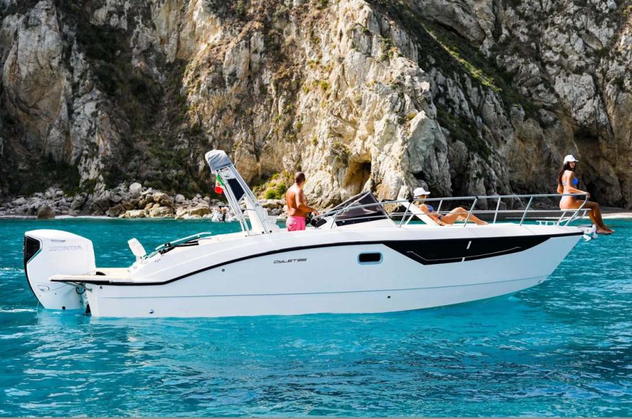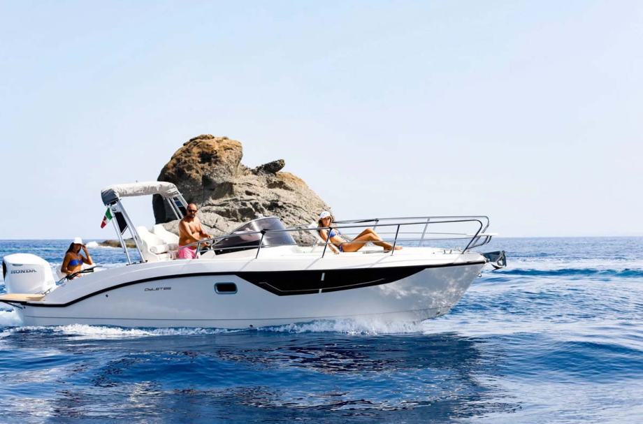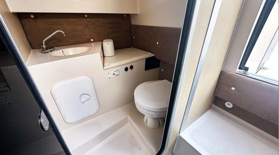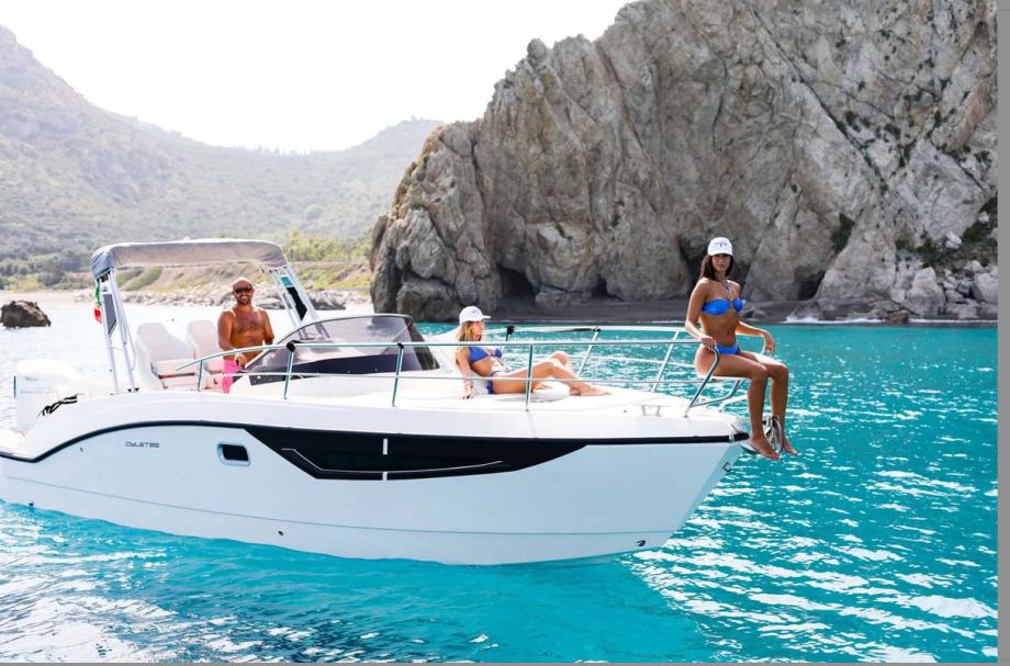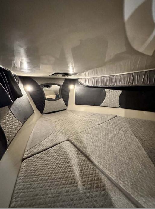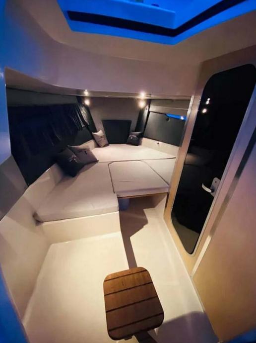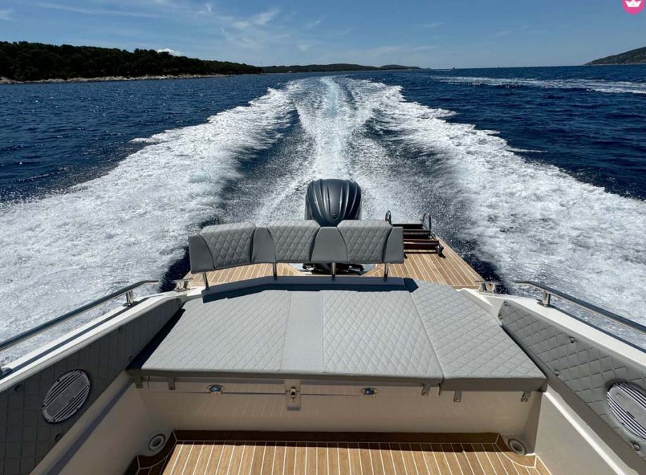 S ovim plovilom, brodogradilište se približilo savršenstvu. Šarmantne linije, nevjerojatna vanjska udobnost, izvrsna završna obrada. Unutra nalazimo dvostruku kabinu u pramcu i manju kabinu ispod ulaznih ljestava. odvojena kupaonica s izvlačnim tušem. Pametna i dobro osmišljena stražnja sunčana terasa, sa sudoperom, štednjakom i hladnjakom uz nju, u posebnom prostoru. Dvostruki prolaz do pramca, gdje se nalazi jedna od najvećih sunčanih paluba u našoj ponudi.