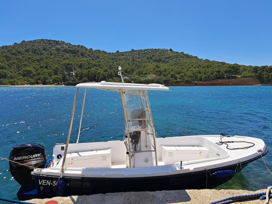 Brod je unikatan i samo je 1 ovakav, povecana je konzola i napravljen je inox rollbar na koji je namontiran tvrdi krov. Sve je rađeno po narudžbi.