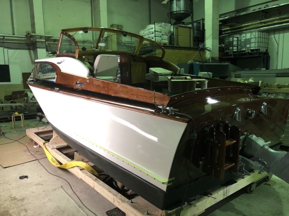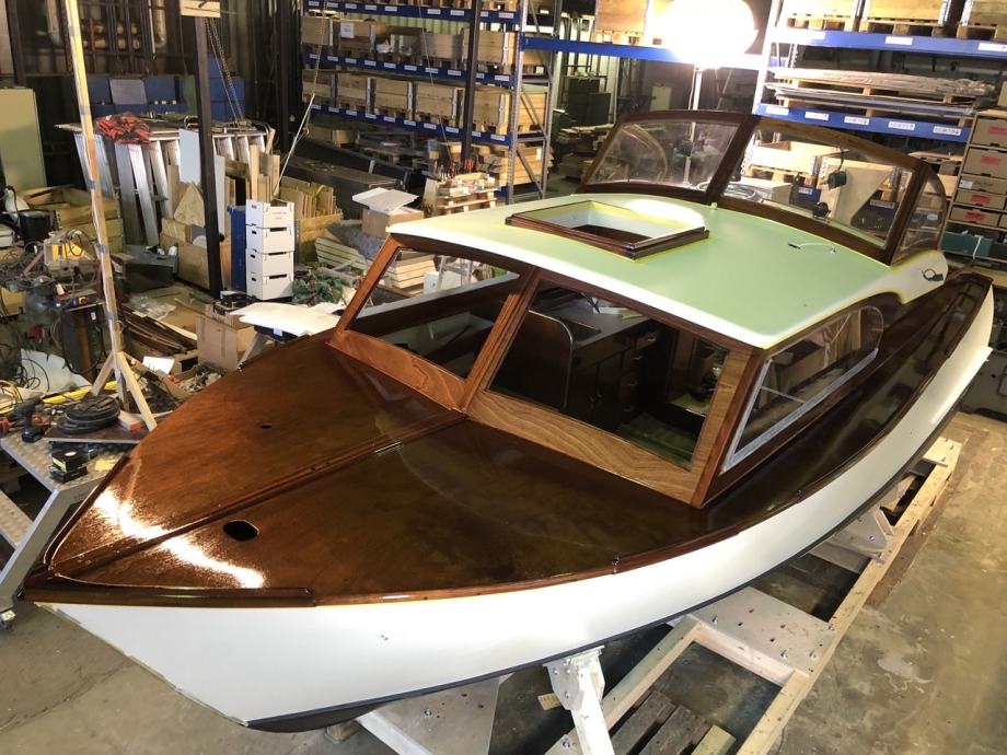 Unique wooden mahogany boat from 1971