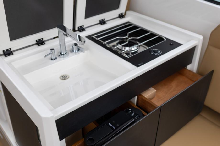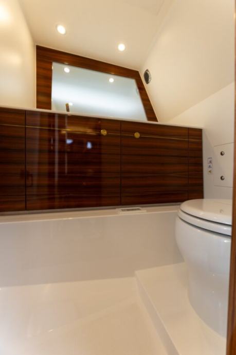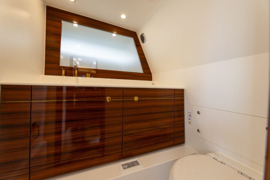 Plovilo vlada morem s preciznošću zahvaljujući Yanmar motoru od 370 KS, naprednoj Simrad navigaciji i bow thruster-u, dok električni prednji sidreni sustav, Nespresso Mini i Fusion audio sustav osiguravaju vrhunski komfor.