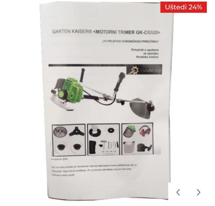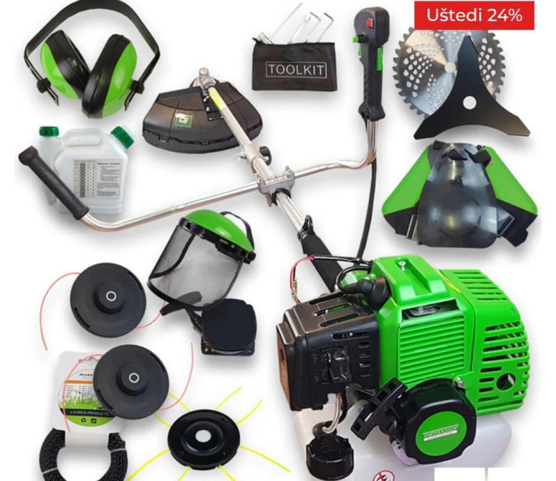 1x set alata, 1x svežanj uglatog flaksa, 1x starter, 1x trimer glava za uglati flaks