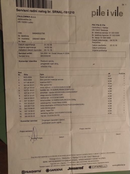 servisiran i to generalno vrijednost servisa je 2200kn na slici vidljivo sve što je promijenjeno.
