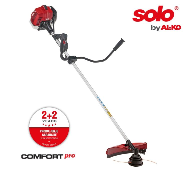 Kod ove praktične kose koja teži samo 6,0 kg profitirat ćete od 2-taktnog motora s 0,9 kW (30 ccm) najnovije generacije koji se jako lako pokreće, od izuzetno robusne konstrukcije, profesionalnih upravljačkih elemenata te od svestranosti i lakoće održavanja svih solo® by AL-KO uređaja.