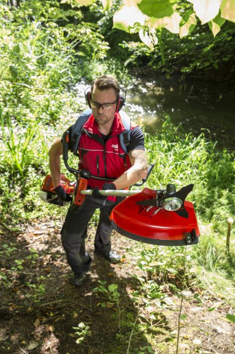 Motor s niskim emisijama. Zahvaljujući radu s malo vibracija, Ready to Start prekidaču, podstavljenom pojasu za nošenje, dobro osmišljenoj ergonomiji držanja i optimalnoj izbalansiranosti uređaja osiguran je neometan rad u prirodnom položaju za rad. Osim toga uređaj je vrlo lako održavati, a dva priložena rezna tijela – robusni metalni rezni tanjur i rezna glava s niti (radna širina 25 odnosno 41 cm) – vrlo lako se mijenjaju. Glava s nitima Fast&Easy omogućuje jednostavno namotavanje i navijanje rezne niti bez otvaranja glave. Stabilna cijev promjera 28mm.