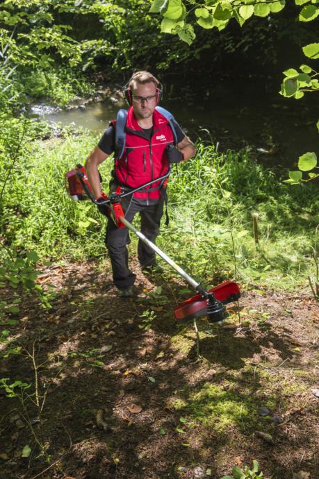 Zahvaljujući udobnom i sigurnom vođenju uređaja bicikl ručkom i ergonomski integriranim upravljačkim elementima čak ćete i i zahtjevnije košnje i čišćenja na travnatim površinama, u visokoj travi ili tvrdokornom gustišu obaviti bez muke i s dobrim položajem tijela. Uz to vam remen za nošenje i pogon s izuzetno malo vibracija pružaju značajno rasterećenje u radu, udobnije nošenje i pomoć u sigurnom rukovanju čistačem.