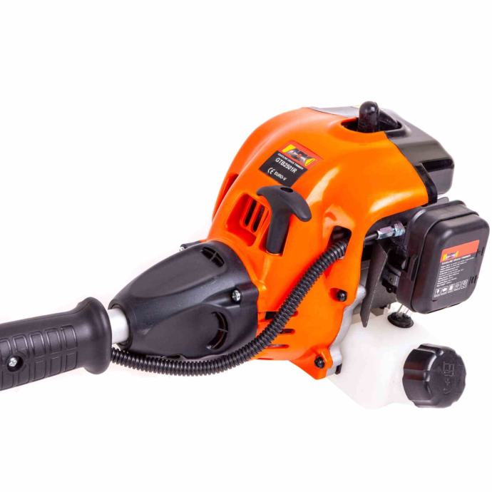 Sa snažnim dvotaktnim motorom 0,75 kW/1 KS idealan je za košenje u vrtu ili oko kuće, zapremina motora 25 cc.