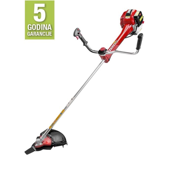 Benzinski motorni trimer vrlo je učinkovit i snažan te njime bez problema možete urediti bilo koje travnate površine s višom travom te zapuštene travnjake koje prvotno treba raskrčiti. Također su pogodni za rad na teže dostupnim mjestima u vrtu, na teže pristupačnoj brdovitoj konfiguraciji ili terenu djelomično prožetim kamenim materijalom. Kvalitetan dvotaktni motor profesionalne kvalitete isporučuje dovoljnu snagu za sve primjene. Posebni anti-vibracijski sistem omogućuje vrlo ugodan rad i kada se radi o dužem vremenu korištenja trimera. Kontrolu upravljanja i balans trimera lako je postići s univerzalno podesivim aluminijskim ručkama koje se nalaze s obje strane, tzv. bicikl ručke. Cijev trimera izrađena je od aluminija što doprinosi smanjenoj težini, a dobro podnosi sva opterećenja i vibracije. Trimer je opremljen sa poluautomatskom profesionalno glavom sa dvije niti, a za tvrdokorniju, veliku travu ili raslinje, a moguće je montirati i trokraki nož. Za što sigurniji i jednostavniji rad, prijenos snage od motora do glave sa reznom niti izveden je s centrifugalnim kvačilom koje isključuje glavu s reznom niti u stanju mirovanja (rad na leru). Za što ugodniji rad s trimerom se isporučuje i remen za nošenje koji je moguće individualno prilagoditi svakom korisniku ponaosob. Paljenje trimera vrši se s poteznim startnim mehanizmom.