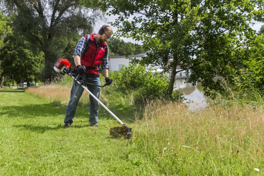 Motor s niskim emisijama. Rad s puno snage – motor od 1,5 kW. Sigurno vođenje bez umaranja zahvaljujući oblikovanom bicikl rukohvatu. Glava s nitima Fast&Easy od 130mm – jednostavno postavljanje i navijanje rezne niti bez otvaranja glave. Ready-to-Start prekidač. Optimalna ravnoteža uređaja zahvaljujući vodilici za vješanje remena. Udoban profesionalni dvostruki pojas za nošenje.Kod ovog snažnog motornog čistača profitirat ćete od jakog i istovremeno mirnog 2-taktnog motora s 1,5 kW 2,04 KS (40,2 ccm) najnovije generacije s niskim emisijama. Zahvaljujući udobnom i sigurnom vođenju uređaja bicikl ručkom i ergonomski integriranim upravljačkim elementima čak ćete i i zahtjevnije košnje i čišćenja na travnatim površinama, u visokoj travi ili tvrdokornom gustišu obaviti bez muke i s dobrim položajem tijela. Uz to vam remen za nošenje i pogon s izuzetno malo vibracija pružaju značajno rasterećenje u radu, udobnije nošenje i pomoć u sigurnom rukovanju čistačem.