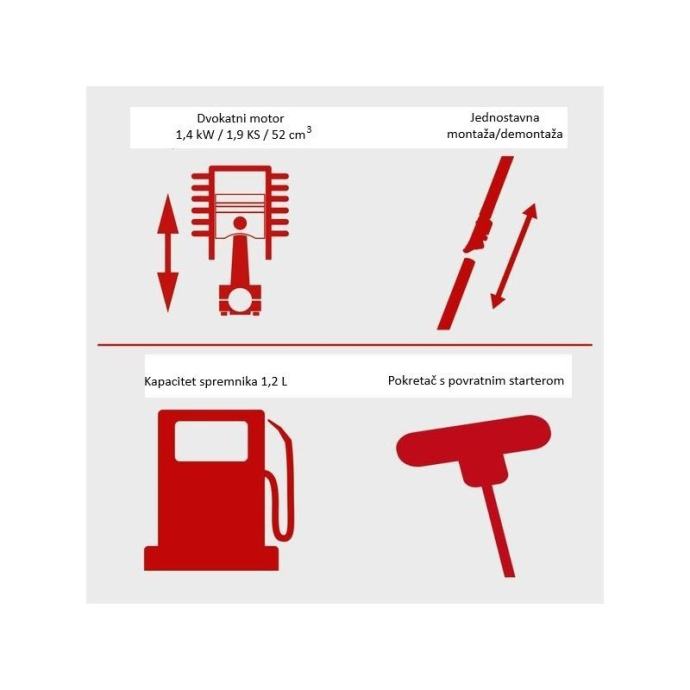 -Spremnik goriva je 1,2 L, omjer mješavine ulja i benzina 1:40