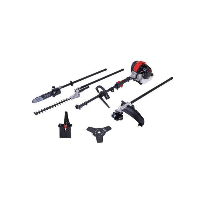 -Višenamjenski benzinski uređaj PMT520 je modularni alat s četiri funkcije u jednom pogonu: trimer za travu, trimer za grmlje, škare za živicu (produženi doseg) i lančana pila s motkom