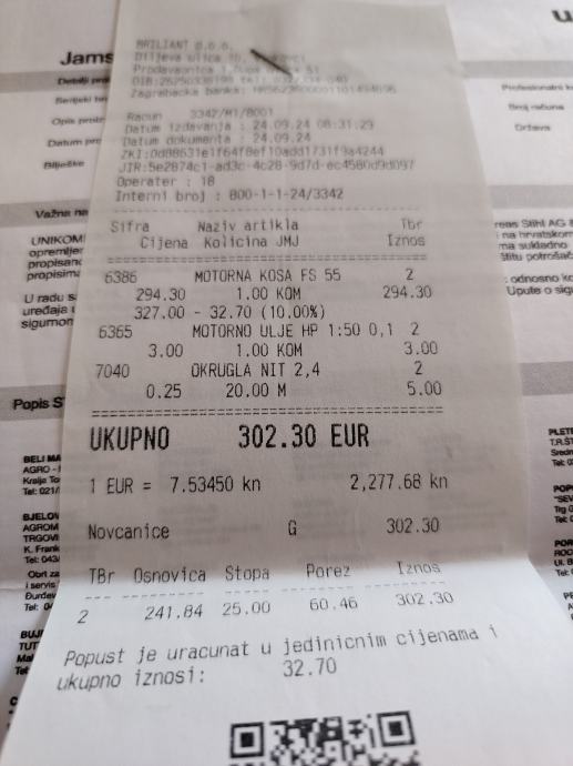 Prodajem rabljeni Stihl motorni trimer. Radi se o modelu FS 55, benzinskom trimeru s ravnom šipkom i dvostrukom ručkom u obliku slova T, što omogućuje ugodno držanje tijekom rada. Uz trimer dolazi i nosivi remen.Trimer ima garanciju još do 11 mjeseca što se vidi na slikama