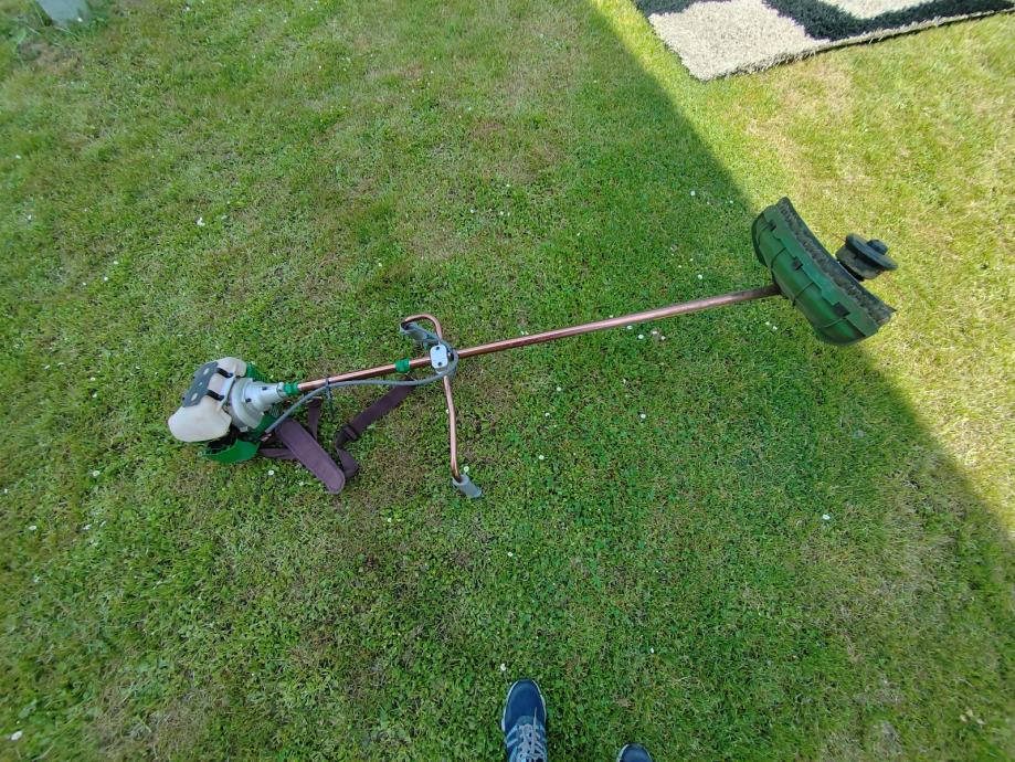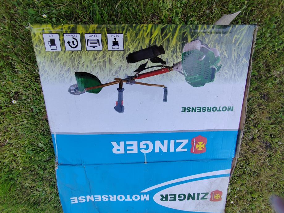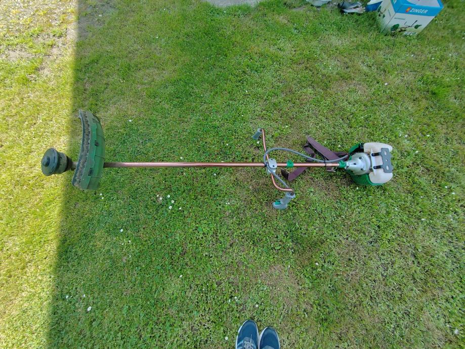 Motorni Trimer (leđni), jačine 3,4 kwt, 58 cm3, 8500 min, 1,6 lit. Dodatni nastavak "pila" za piljenje grana i slično.