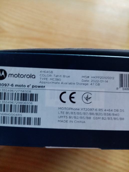 Motorola e7 power, 4+64gb.,nov ne korišten, cijena 100eura