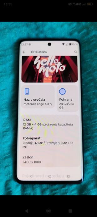 Motorola edge 40 neo, dual Sim, u odličnom i očuvanom stanju. Fantastičan mobitel vrhunskih karakteristika.