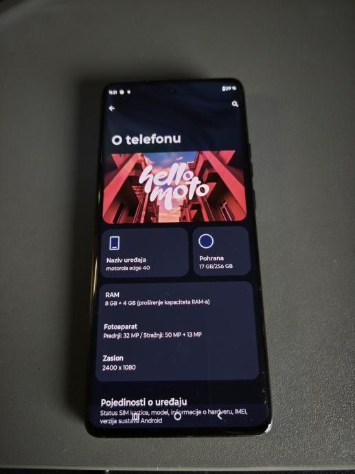 Ispravan, vide se tragovi korištenja na okviru gore i dolje, ekran u super stanju, sveukupno 8.5/10. Dolazi bez punjača.