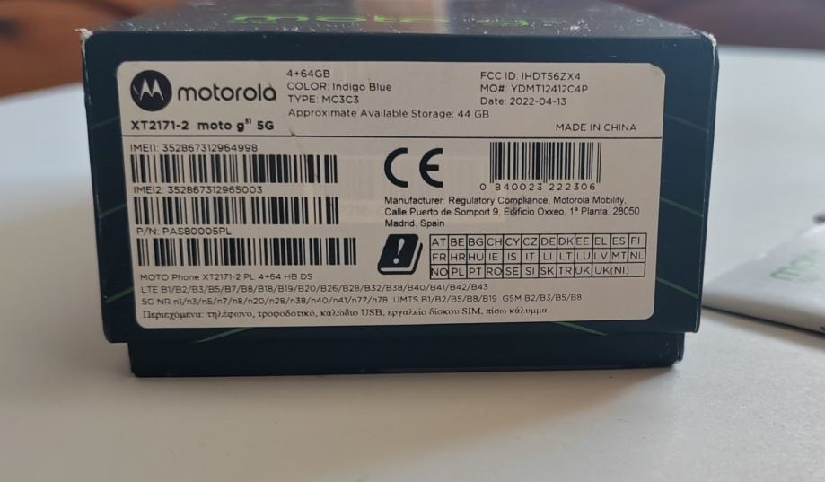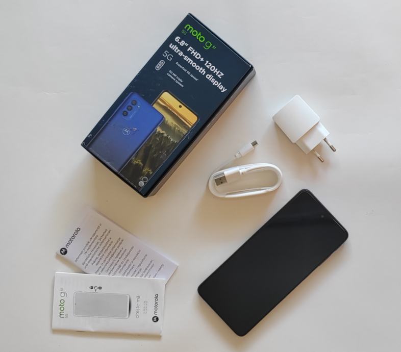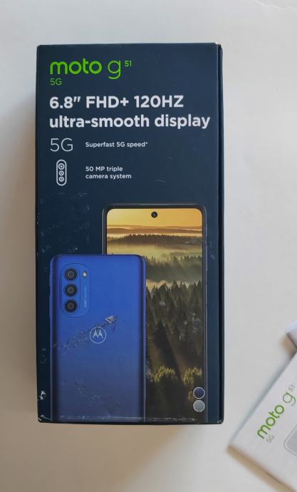 Motorola g51 sa svom opremom. Podržava 5G mrežu i dvije kartice. Baterija dobra.