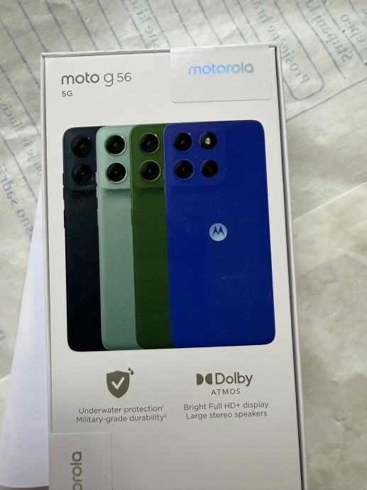 Prodajem nov Motorola Moto G56 5G mobitel. Uređaj je potpuno nov, tvornički zapakiran. Dolazi s 8GB RAM-a i 256GB interne memorije. Podržava 5G mrežu, ima Dolby Atmos zvuk, Full HD+ zaslon te zaštitu od vode uz military-grade