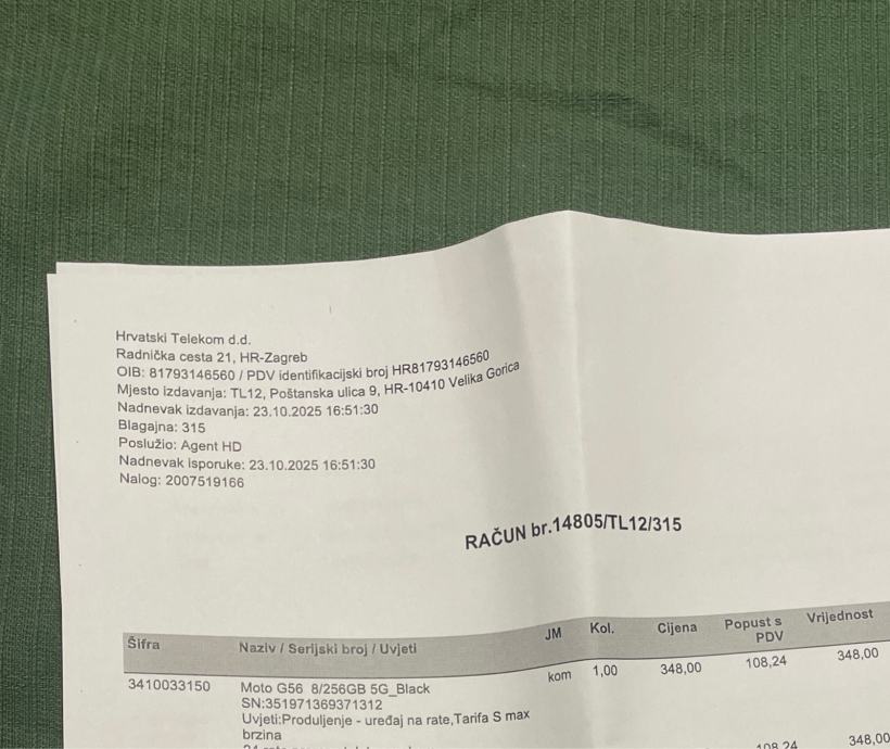 MOTOROLA G56, Novo s računom