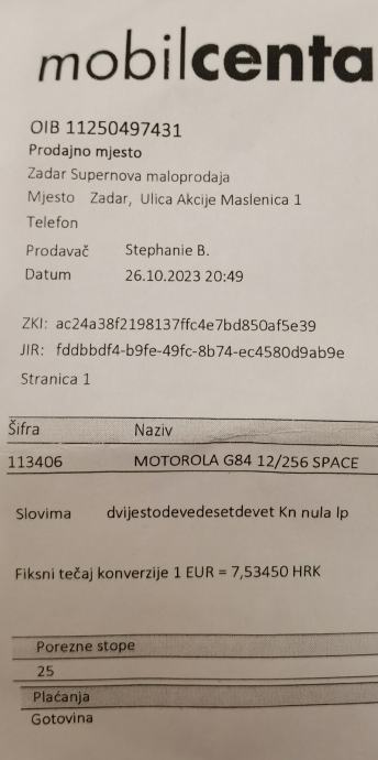 Motorola g84, 12GB/256GB, 5G, 50 Mpx, Snapdragon 695 5G, NOVO, račun!