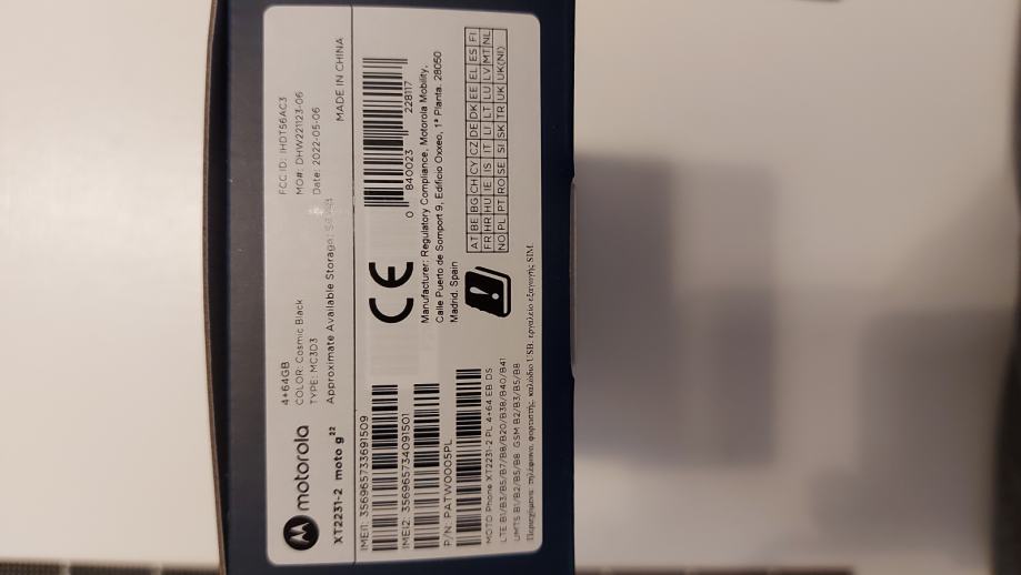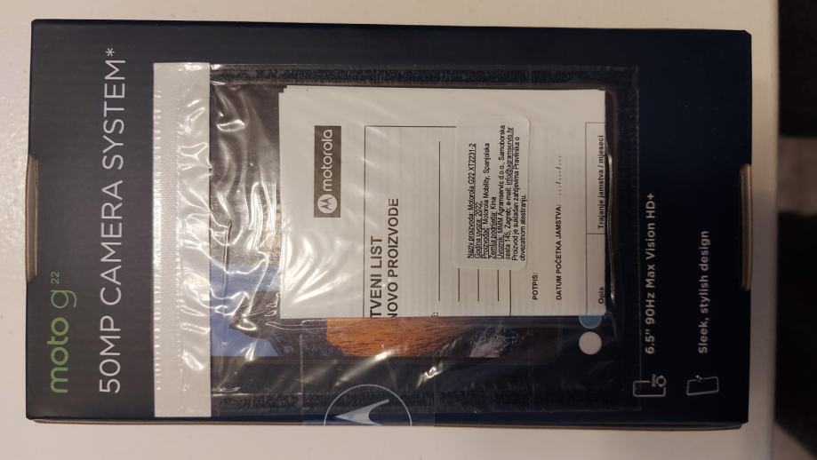 Motorola moto g22 64GB crna, NOVO, ZAPAKIRANO, racun, garancija od 1mj.2023.