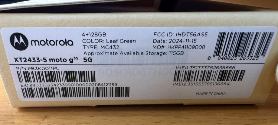 Prodajem novi mobitel Motorola MOTO G35 5G 4GB RAM 128GB DUAL SIM, zeleni.