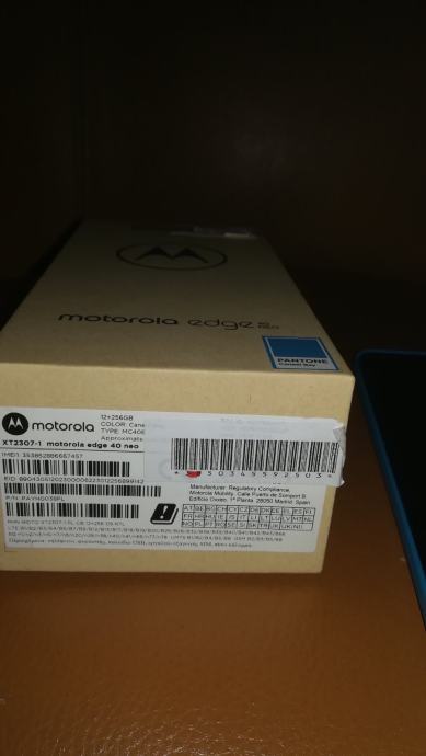 Prodajem nov Motorola Edge 40 Neo mobitel u plavoj boji (Pantone Caneel Bay). Uređaj je potpuno nov i dolazi u originalnom pakiranju.