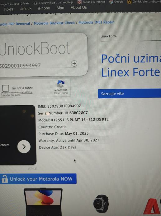 Motorola Razr 60Ultra 512gb, Pantone Mountain trail, garancija do 30.04.2027. Racun nemam ali prema IMEI u mobitel je kupljen u Hrvatskoj i ima vazecu garanciju. Mobitel je bez ijedne crtice i zdravlje baterije je na 100 posto. Cijena je 620e fiksno i bez zamjena. 091/3844362