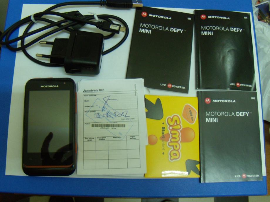 HITNO PRODAJEM MOBITEL MOTOROLA DEFY MINI korištenu mjesec i pol dana, dobro usčuvanu sa svim originalnim dijelovima ( punjač, USB, priručnik i jamstvo) u originalnoj kutiji s jamstvom od 2 godine!!! Uz mobitel dolazi i 2GB memorijska kartica.Moguće besplatno dekodiranje godinu dana od kupnje u T-Comu. Cijena 700 kn fiksno, grad Zagreb, po potrebi šaljem poštom pri ćemu kupac plaća dostavu.