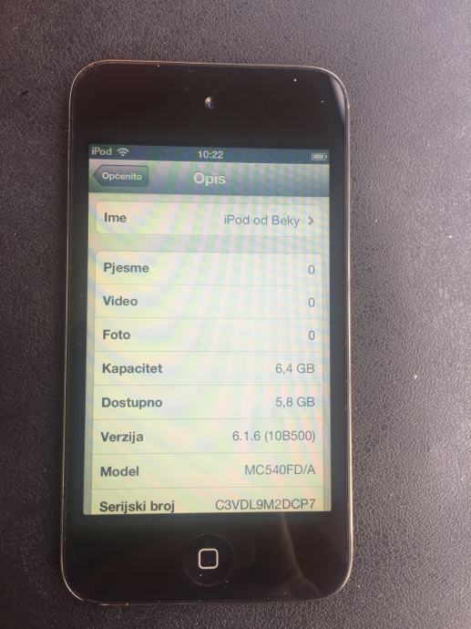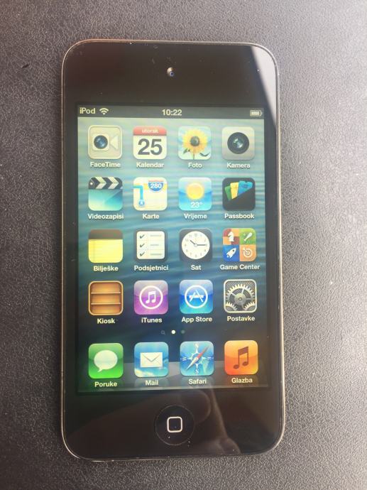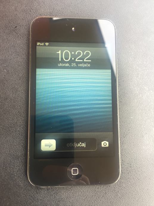 Prodajem iPod Touch cetvrte generacije, ispravan je 100%, jedino sto ima ogrebotina na zadnjoj strani, IOS je 6.1.6, pogodan je za djecu ili kao music player. Ima 8GB memorije, prednju i zadnju kameru. Stanje mozete vidjeti na slikama, razlog prodaje je taj sto vec duze vremena stoji i ne koristi se. Nazalost nemam kutiju od njega, dobijete USB kabel za njega bez adaptera, ja sam ga punio iskljucivo preko pc-a.