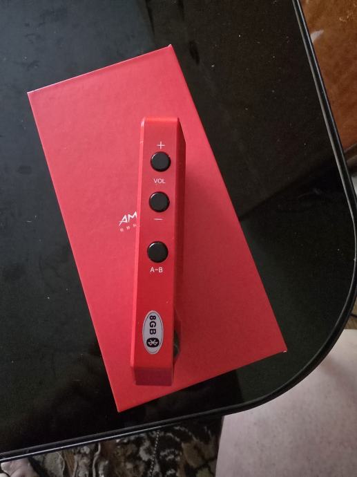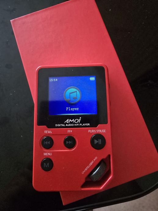 Kratko rabljen MP3 player bez unutarnje memorije, Bluetooth funkcija za 8 GB glazbe.Baterija može trajati do 60 sati neprekidnog slušanja žičnim slušalicama pri nižim razinama zvuka.Ima radio,te dolazi bez punjača,samo sa micro kabelom za punjenje i prijenos podataka.Cijena fiksna bez zamjena.