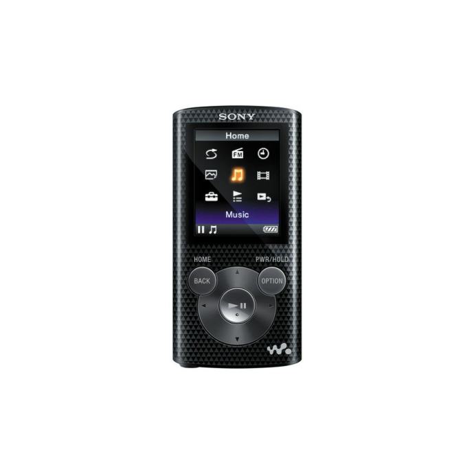 The black Sony 8GB NWZ-E384 Series Walkman MP3 Player supports audio playback, video playback, photo viewing and FM radio. It features 8GB of internal flash memory and a 1.77" TFT color LCD screen with QQVGA 128 x 160 resolution. The Walkman's built-in lithium-ion rechargeable battery provides up to 30 hours of continuous audio playback, up to four hours of uninterrupted video playback or 13 hours of FM radio playback on a single charge. Plus, it supports drag-and-drop media file transfers from either iTunes for Windows or Windows Media Player (WMP).