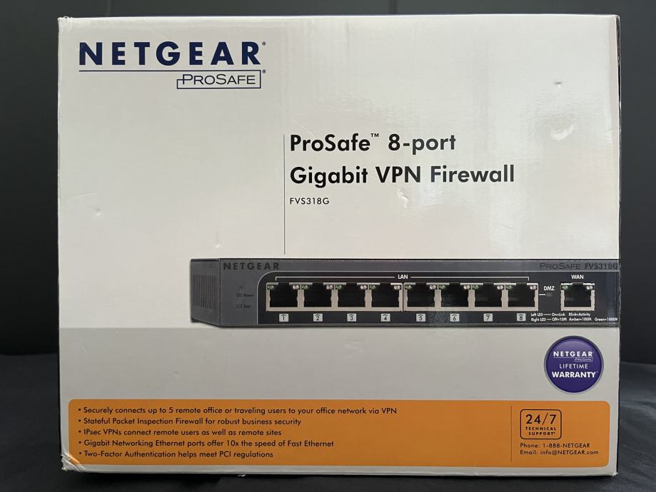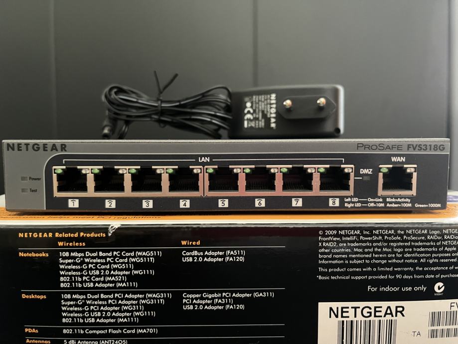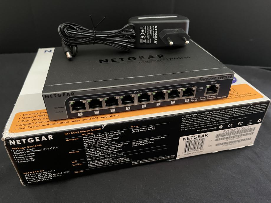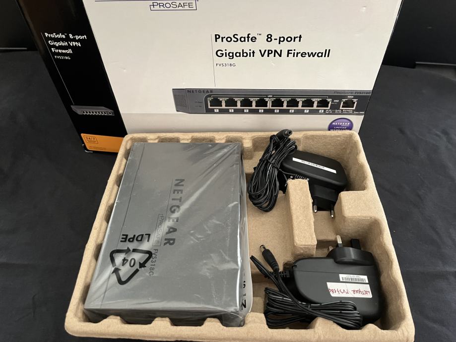 Prodajem Netgear ProSafe FVS318G VPN firewall, koji je u odličnom stanju i spreman za upotrebu u malim i srednjim poduzećima ili u kućanstvu. Ovaj firewall pruža visoku razinu sigurnosti i stabilnosti, omogućujući sigurno povezivanje putem VPN-a i učinkovito upravljanje mrežom. Uređaj se može koristiti i kao gigabitni switch.