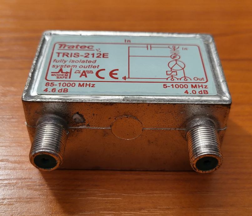 Ispravan Tratec TRIS-212EEN koaksijalni razdjelnik / spliter sa prenaponskom zaštitom u izvrsnom stanju, vrlo malo korišten. Moguća proba prije kupnje.