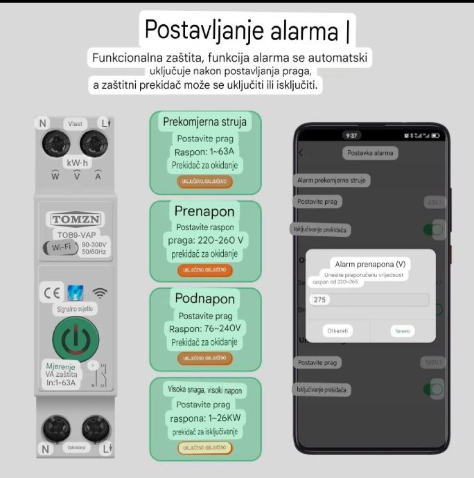 WiFi pametni prekidač strujnog kruga, zaštita od preniskog napona