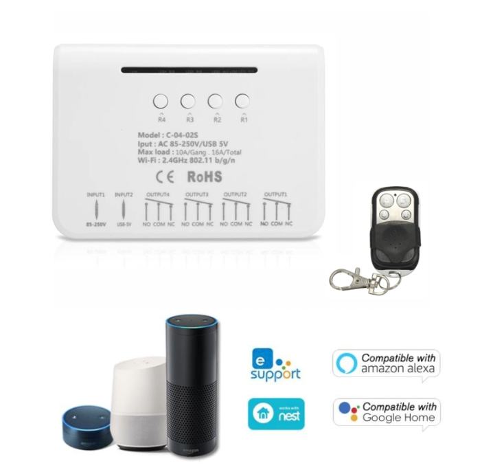 WiFi pametni pametni prekidač DiY prekidač za AC / DC 7-32V ili AC 85-250V napajanje za 4CH kontrolu s podrškom RF433 i aplikacijom EweLink. Ovaj pristupačni kontroler omogućuje korisnicima daljinsko uključivanje / isključivanje povezanih uređaja različitih vrsta i marki putem EWeLink-a s bilo kojeg mjesta na svijetu i u bilo koje vrijeme, dok se prekidačem može upravljati i daljinskim upravljačima RF433, ovaj je rad ograničen na raspon uređaja. Imate mogućnost vremena uključivanja i isključivanja rasporeda. Podržani su i načini zatvaranja / samozaključavanja. U načinu samo zaključavanja, korisnici mogu u trenu uključiti / isključiti povezane uređaje. U načinu inchinga korisnici mogu birati između dva načina: 1s uključen i zatim automatski isključen, 1s isključen i zatim automatski uključen.