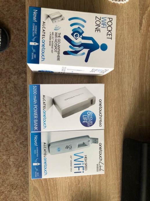 Prodajem rabljeni T-com WiFi ruter Alcatel One Touch Link W800 + One Touch PB60 Power Bank 5200mAh
