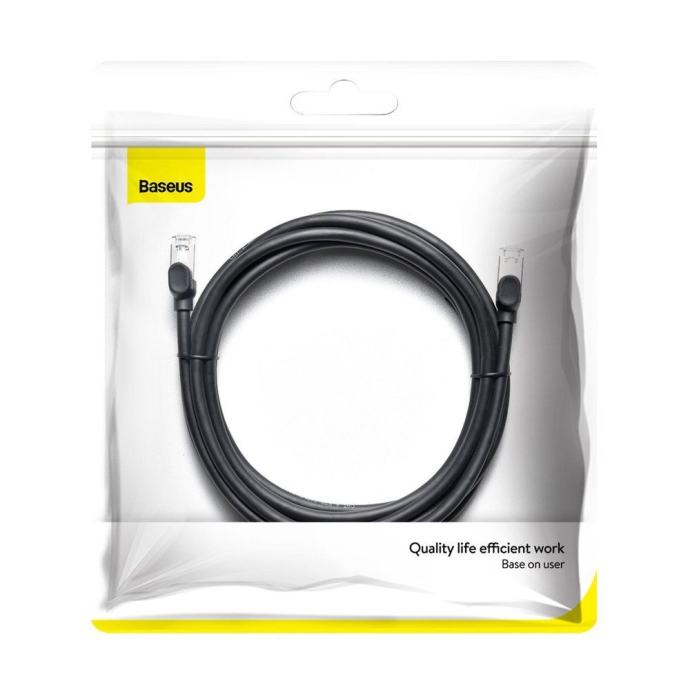 Mrežni kabel Baseus Ethernet koristi se za povezivanje pasivnih i aktivnih uređaja u LAN-ovima. Krajevi kabela završavaju se utikačima RJ45 koji omogućuju povezivanje s uređajima poput prijenosnih računala, računala, usmjerivača ili pisača.