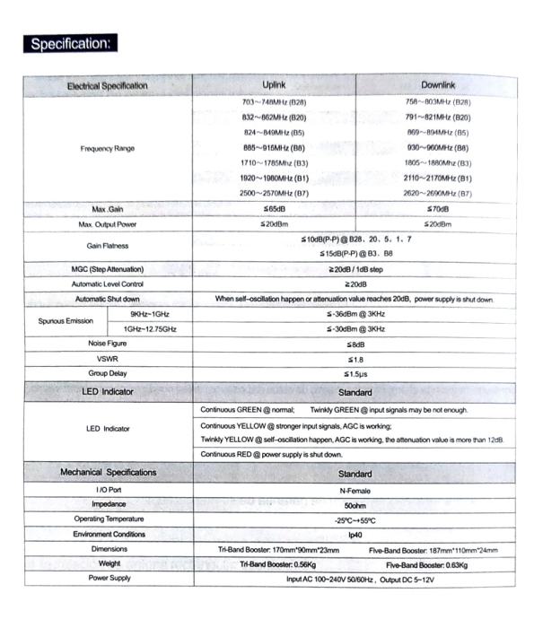 Informacije o kupnji: Pogrešna frekvencija i slabi signali mobitela vani (0 crtica ili 1 crtica) mogu dovesti do toga da pojačalo signala ne radi. Ako želite potvrditi frekvenciju, nazovite svog mobilnog operatera