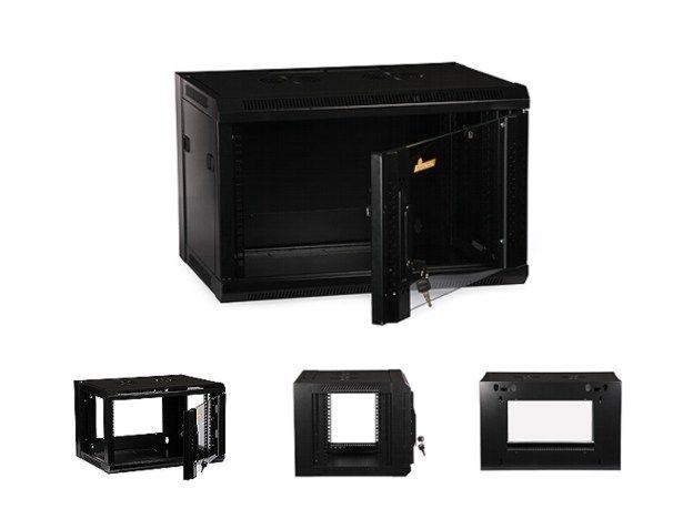 Signal 6U 450mm kabinet komunikacijskih mreža, lijep moderni crni dizajn, staklena vrata, dvostruko zaključavanje ključa, hlađenje i kabelski utori