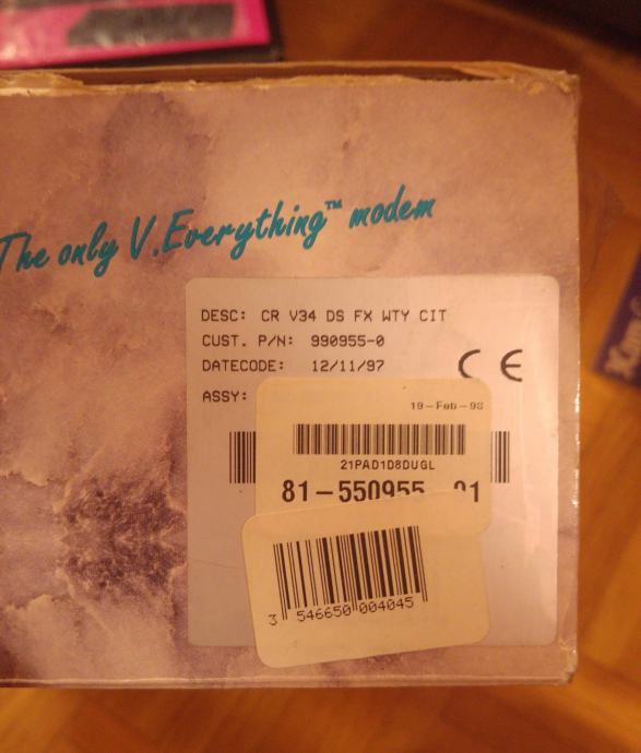Ne korišteni kolekcionarski retro US Robotics modem.