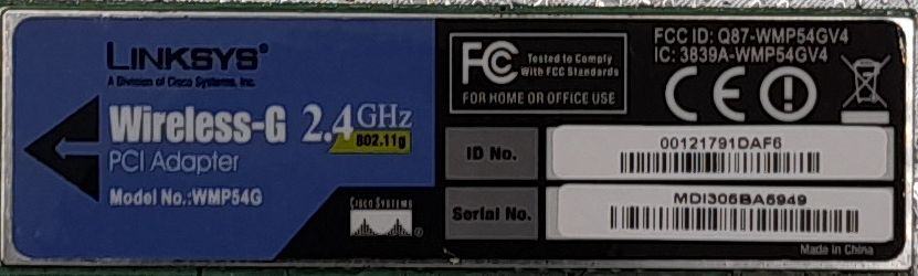 Linksys WMP54G Wireless-G PCI WiFi kartica