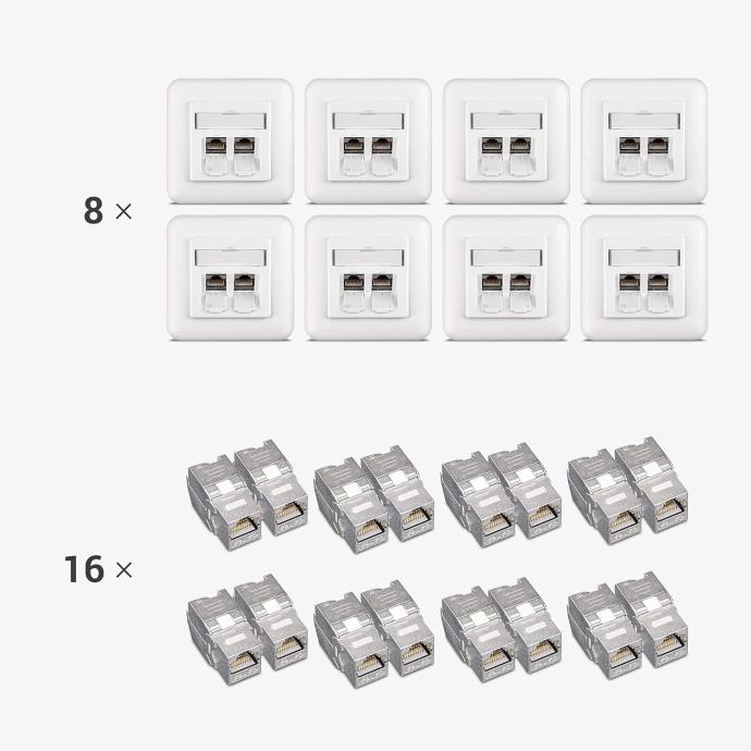 16x Keystone modul 8x mrežna utičnica CAT 6A kabel - 10 Gb/s