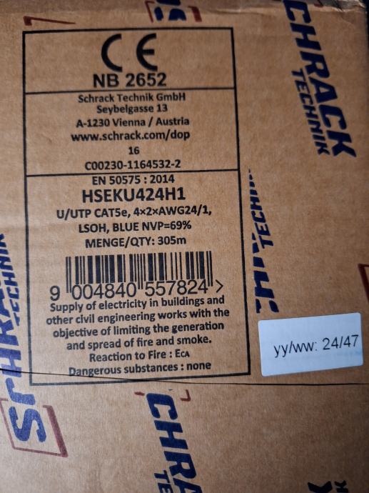 Prodajem novi Schrack U/UTP inst. kabel cat.5e, 4x2xAWG24/1, PVC,Eca,plavi,305m