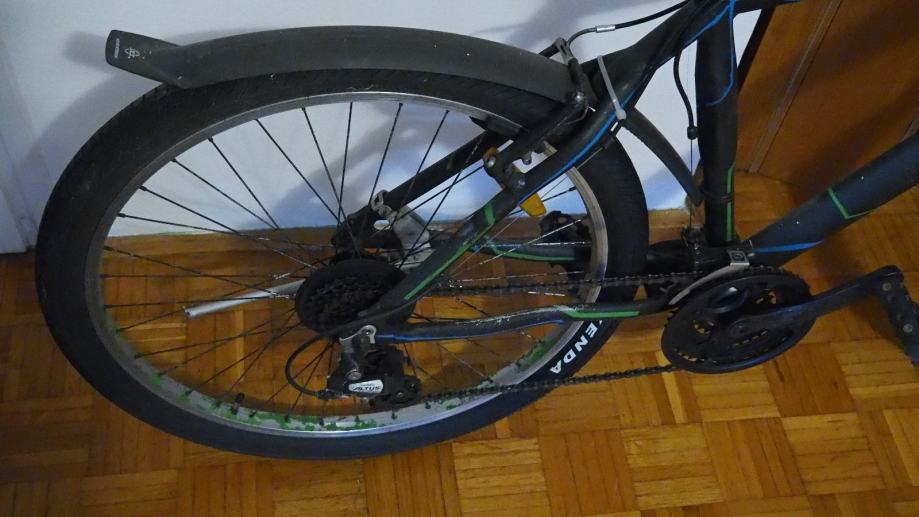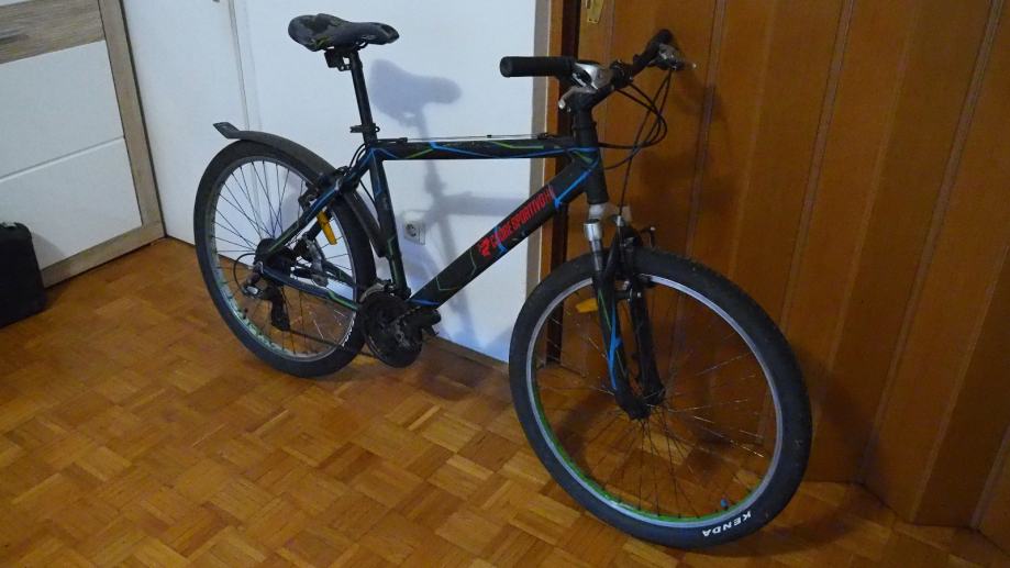 Bicikl je bio pofarban 2 godine nakon kupnje, s moje strane, jer mi je tak bilo fora. Marke je Champion, Shimano altus mjenjači, prednja suspenzija, Kenda gume. Sve radi kako treba.